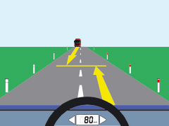 - Der Begegnungspunkt mit dem Gegenverkehr sollte